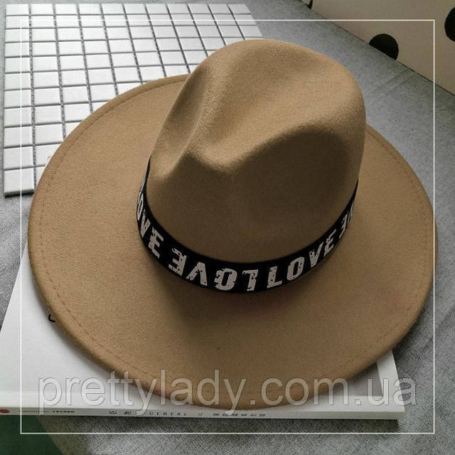 Капелюх жіночий фетровий Федор LOVE зі стрічкою та стійкими крисами бежевий