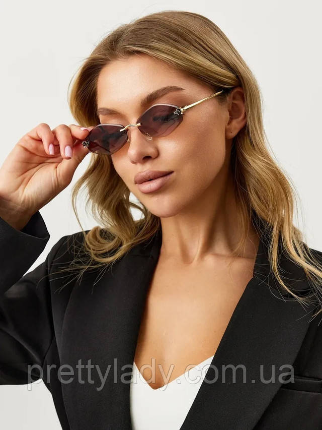 Сонцезахисні окуляри унісекс Panthere без оправи у формі ромбів — стильний аксесуар, що поєднує сучасний дизайн і витончену геометрію. Оригінальна форма лінз у вигляді ромбів додає образу характеру та індивідуальності, а відсутність оправи робить модель легкою та зручною у носінні. Ці окуляри ідеально підходять як жінкам, так і чоловікам, гармонійно доповнюючи літній або міський образ. Високоякісні лінзи забезпечують надійний захист від ультрафіолетових променів, даруючи комфорт навіть у найяскравіші дні.
