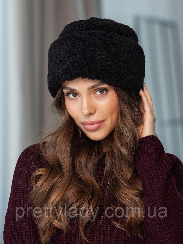 Шапка жіноча тепла Teddy Lux букле з каракуля чорна